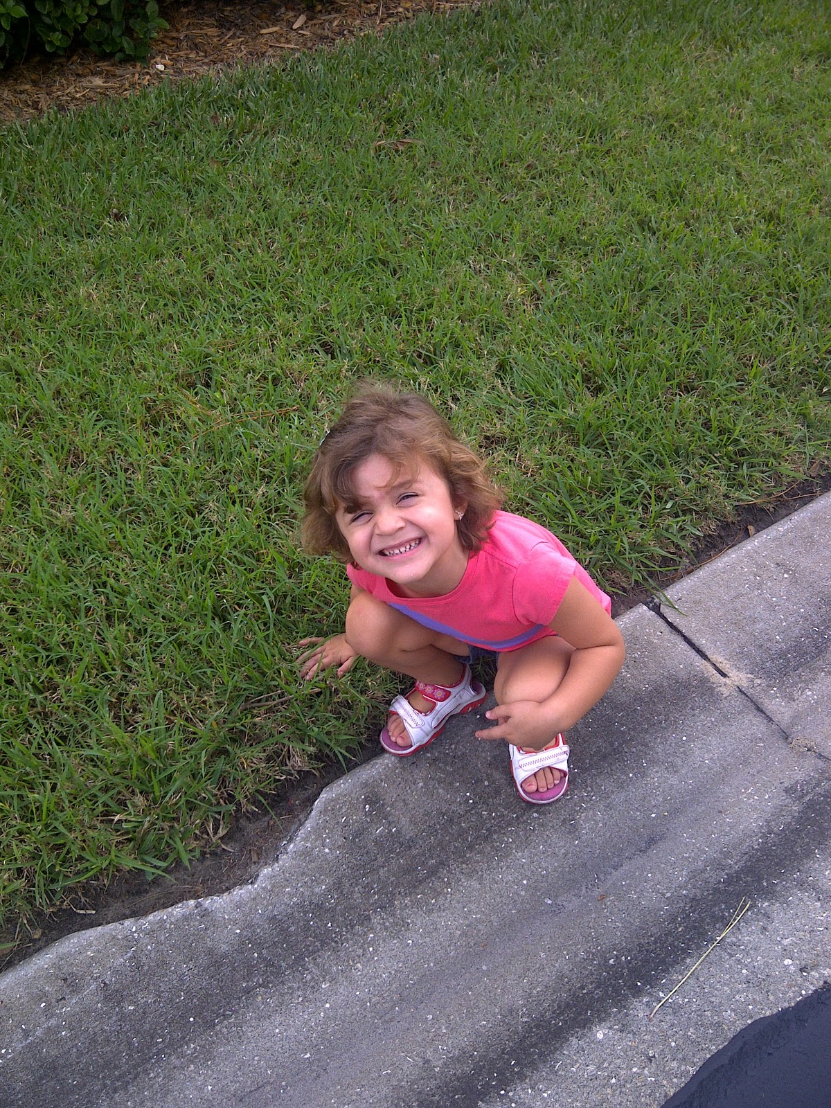 The next day as we set out Lyla started doing her normal jumping around and picking at every rock, stick, and blade of grass that lay on the sidewalk. Then, she looks at me and says, "Hey mom, why don't we look at all the things God made?"